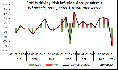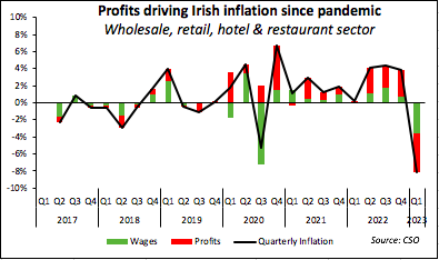 If we zoom out and take a look at the economy as a whole – using quarterly national accounts up to Q1 2023, published last Friday – we can see the role that profiteering played over the course of 2022, as well as some early signs of improvement in the first three months of 2023.
